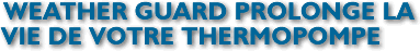 La solution Weather GuardLe Weather Guard est un nouveau produit fabriqué à partir de polymères spéciaux qui peuvent soutenir les températures les plus sévères. Il ne deviendra pas cassant avec le temps. Il peut être facilement installé sur le dessus de toute thermopompe et va la protéger de la neige, de la pluie et du verglas. . |